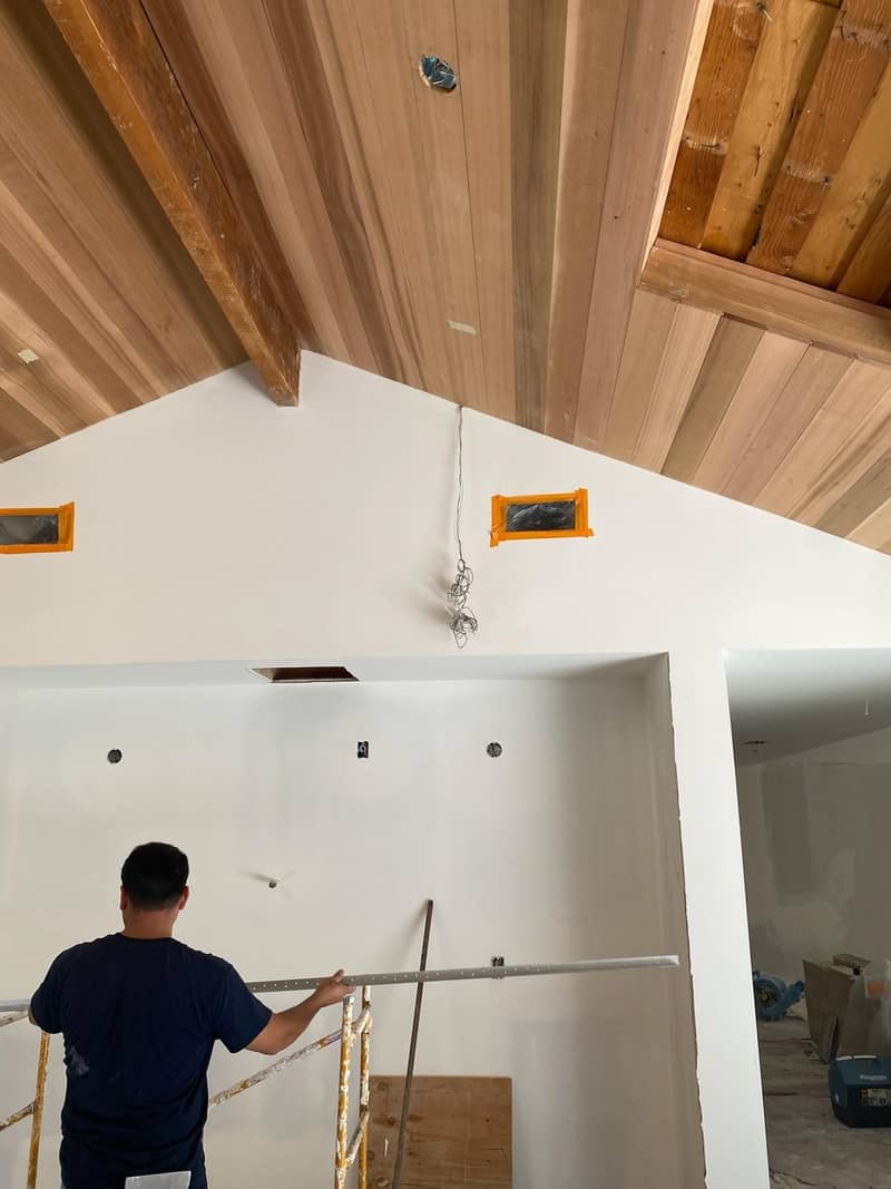 Based on your request, holes, and cracks in ceilings and walls are repaired; stains are sealed, and surfaces are scuff sanded.